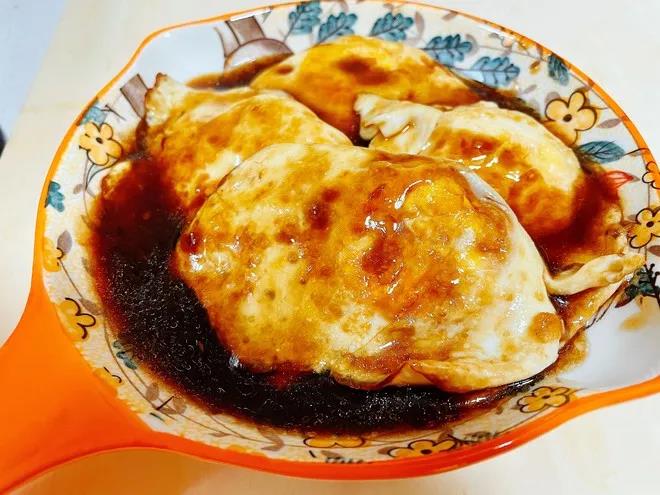 3.將調(diào)好的料汁倒入鍋中,用小火加溫,待荷包蛋吸收湯汁后即可出鍋。酸咸相加的口感,十分下飯哦。