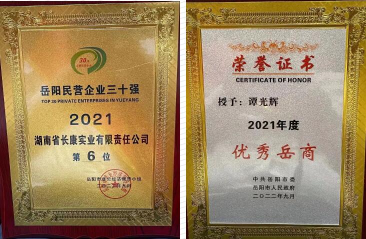 為大力表彰優(yōu)秀企業(yè)家,岳陽市展開優(yōu)秀民營企業(yè)與個人評選,長康集團董事長譚光輝被評為“優(yōu)秀岳商”,長康實業(yè)榮獲“岳陽市優(yōu)秀民營企業(yè)”,并在會上予以通報表彰。