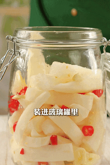 ? 取食泡蘿卜時,一定要用干凈無油的筷子,避免污染罐內(nèi)的汁水,這樣一大罐泡蘿卜在冰箱里能放很久,冬天常溫保存也沒問題。